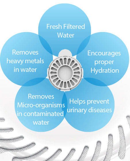 The Pet Life ® 'Auto-Myst' 2-in-1 Filtered Water Dispenser and Food Bowl Replacement Filters are sold as a 6 Pack and designed for use and placement inside the 'Auto-Myst' Snail Shaped Food and Water Feeder. Each Filtration unit is designed to be replaced every 30 to 45 days for up to 270 Days of total usage. Designed to remove impurities in water and assist in the removal of Chemicals, Heavy Metals and Bacteria found in un-filtered water.
