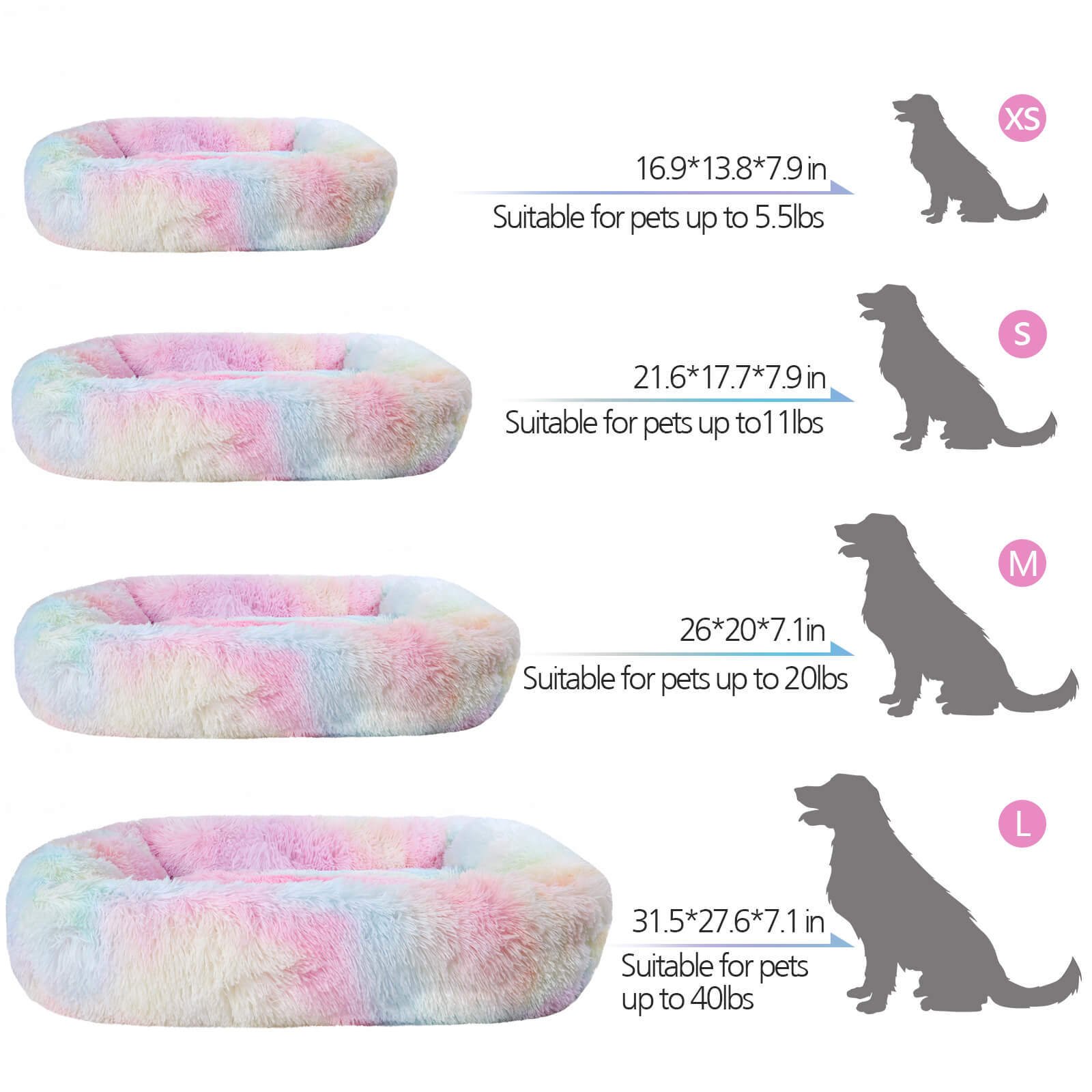 4 size options (XS/S/M/L) and 7 colors (Blue, Pink, Gray, Champagne, Brown, Colorful, and Light Green), are suitable for small, medium, and large pets.